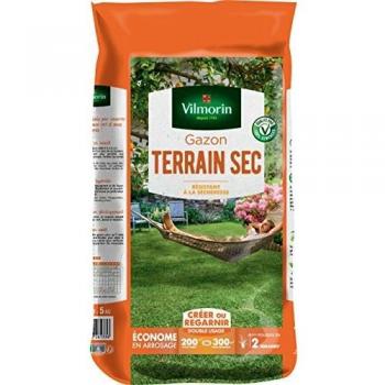 Vilmorin 4460516 Gazon Terrain Sec, Vert, 5 kg - Semences de gazon rustique adaptées aux terrains secs, poids de 5 kg. Idéal pour la création et l'entretien d'un beau tapis vert dans votre jardin
