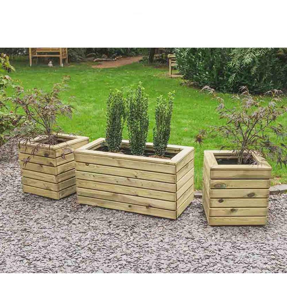 Stylish, cotemporary planter range Pressure treated to protect against rot4 different sizes to choose from Complete with porous lining